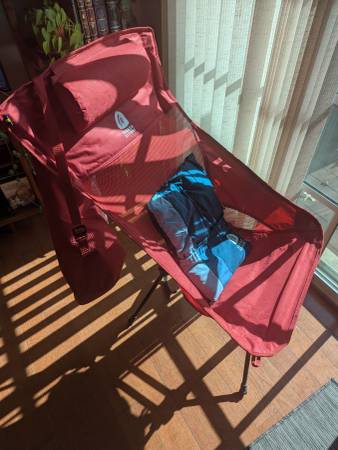 Only used a handful of times this camping chair and pillow combo are the perfect pair for car camping comfort that remains portable and takes up minimal space in the car or at home.