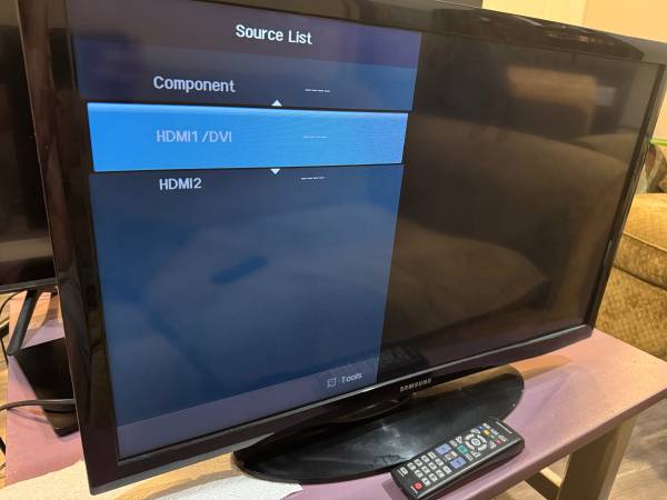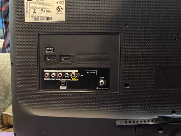 USB port for plugging in media like Roku or Fire Stick. In great condition, with working remote. 32"