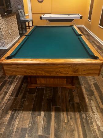 Full-sized pool table with green felt surface