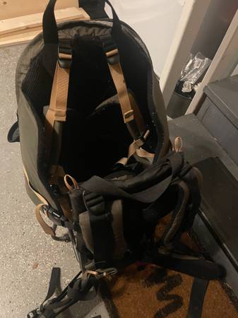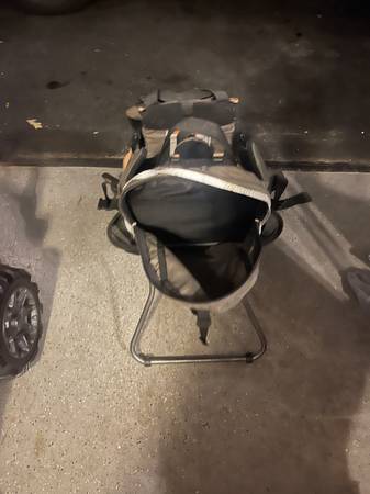 Current ones retail for $320 PLUS TAX. This is in great shape and unfortunately rarely used. Its an older model but has exactly what you need - a seat for a child with retention straps (all in great shape), a stand to set it down on so you can put the child in, zipped up storage for coats etc, exterior storage pocket and 2 side pockets for water bottles.