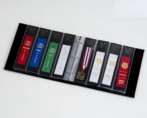 Sporting award sleeves to preserve awards/ribbons/medals. Suitable for a scrapbook or binder $0.25 apiece. $10 for all - over 50.