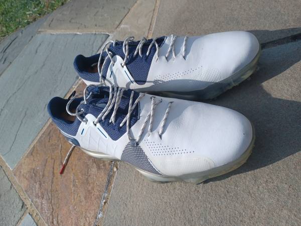 For sale: 1 pair of size 10.5 men's Under Armour golf shoes in like-new condition. I have worn them maybe 3 times. I love them, but I own 4 pairs of golf shoes (just sold a 5th pair via Craigslist). Need to downsize. These white and blue UA Jordan Spieth 4 GTX's were $200 new; you can find them marked down to $120 online. They are sturdy and provide very good support. They also fit a bit narrower than my other golf shoes- if you have a wide foot, I would NOT recommend these. For comparison, I wear size 10 to 10.5 dress shoes and 11 to 11.5 running shoes (depending on the brand), with a Medium width. If no one buys them, I'll just keep them in my rotation- they're pretty awesome.