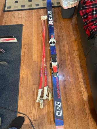 (2)RC ELAN, Contender, 168cm(66”), Blue color with white Solomon 337 bindings, $40;