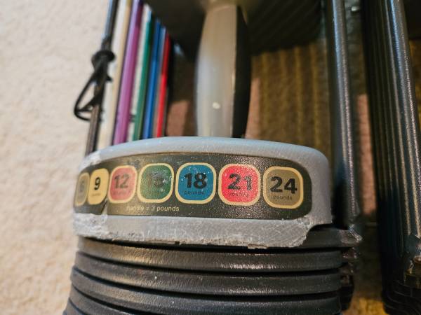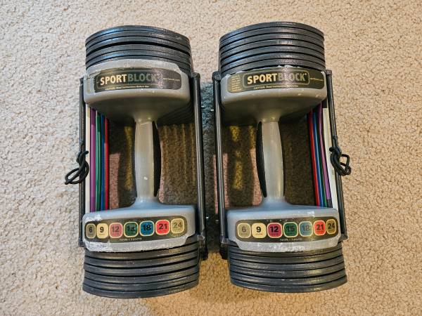 Pair of Powerblocks Sport Block Series version, each dumbbell goes up to 24lbs per hand, adjusting in 3lb increments. $150 for the set Also available separately Powerblock 50lb pair $350 Adjustable...