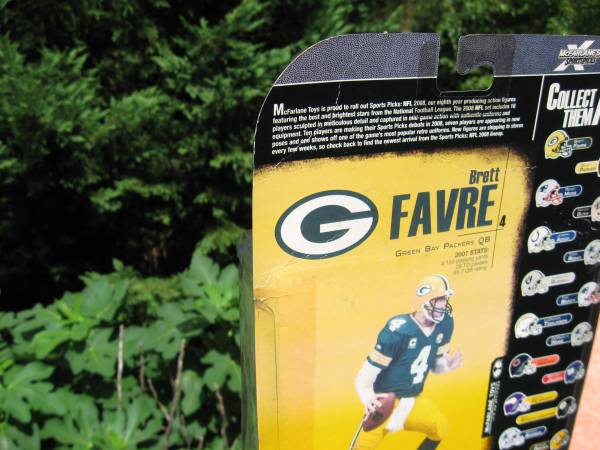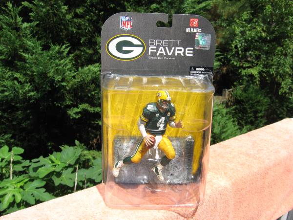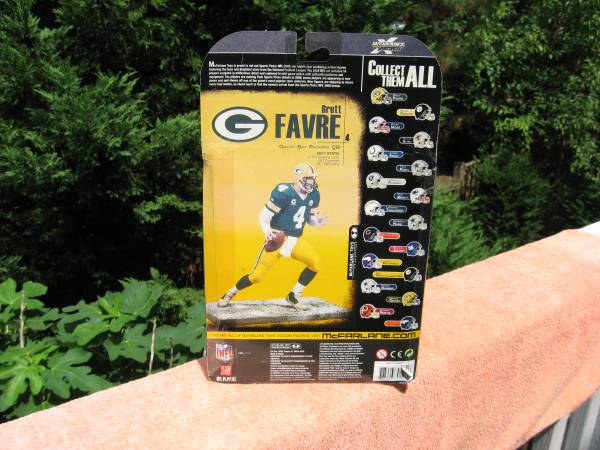 The Bret Favre action figure is 6" tall approximately, and has never been removed from package.