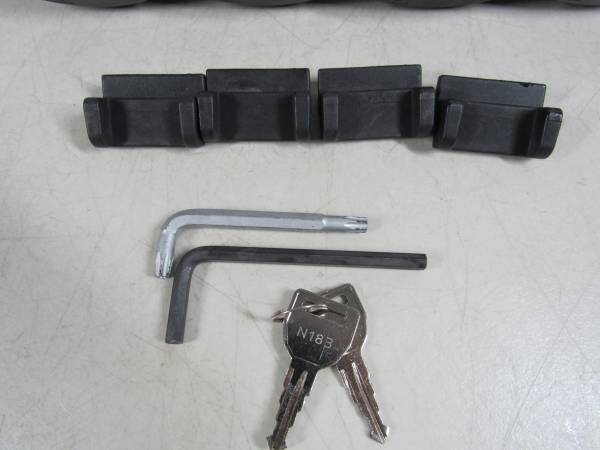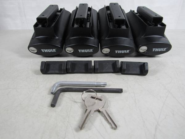 Thule 450R Rapid Crossroad Foot Pack are in good working condition with some minor age and usage wear. Comes with 4 locks and 2 keys. They were always cleaned and lubed after each usage, and were stored in a climate controlled area. No broken or missing parts.