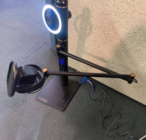 The Tower itself contains the main controls that the streamer/podcaster will access to use the system. There is an LED light dimmer, with click/off at extreme left position, headphone output jack, headphone volume, Mic gain knob, Mic mute button, and camera on/off switch.