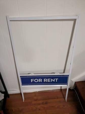 Three realtor sign holders. White metal frame, 24 in x 24 inches main sign with one removable rider below. Each sign has one rider (for sale, coming soon, for rent). $60 for all. Pick-up in near S...