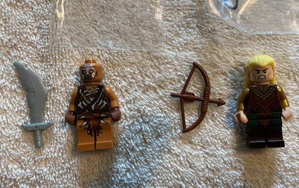 The set came with a total of 7 mini-figures but I only have these two. The weapons included are based on the image on the front of the instructions/box. Both of the figures are in excellent condition. This is for just the 2 mini-figures to the set. There are NO bricks, instructions or a box.