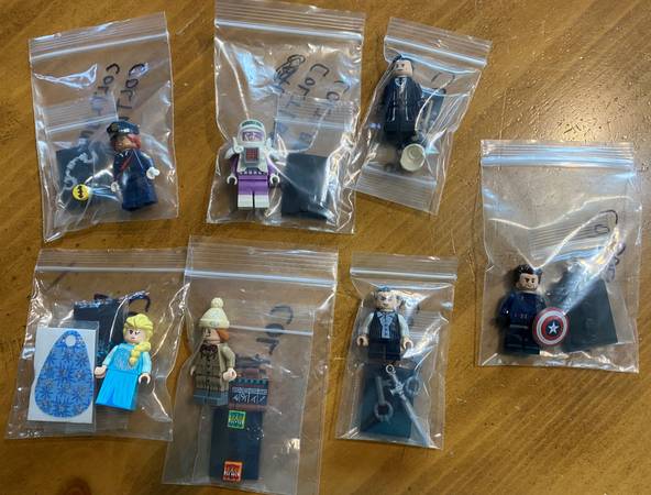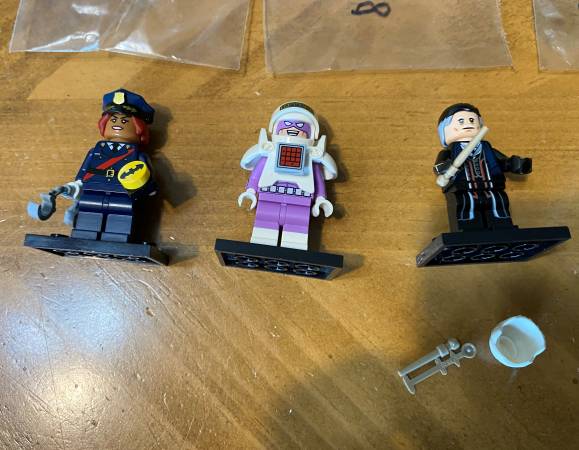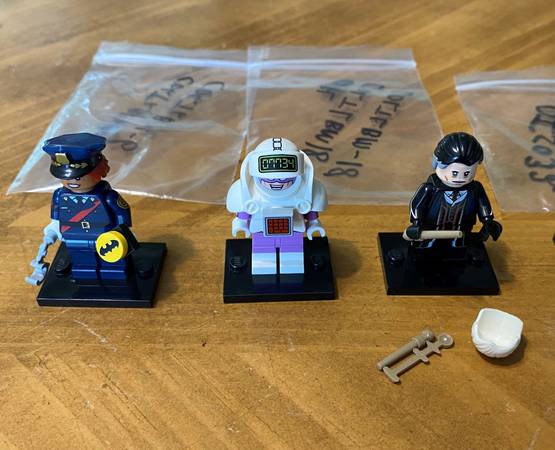 Set of 7 specalized Collector series mini-figures from the 2017-2021 release series. The Collector series mini-figures were released in various years and came in individual bags that included the mini-figure, baseplate, accessories and for some, and a pamphlet. These 7 are complete and include the mini-figure, baseplate and the accessories but I do not have the pamphlet or bag the figures came in.