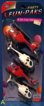 Also have one open package with only two helicopters, one red Fire Department with black label and one white Sheriff Police with blue label. This package is $2.