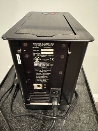I bought this as a reconditioned unit (new belts, rollers, etc) from Rye Park Gaming for $8,500 about 5 years ago for my home game (so it has been used very little), but I stopped hosting about 2 years ago. It's still in perfect working order. Comes with power cord. I can provide you with a PDF version of the owners manual, which teaches you how to go into the service menu to change settings, as well as the factory password to enter some deeper settings in the menu. It has been recently cleaned (the rollers are easy to clean with q-tips and alcohol -- I can show you how if you desire). I also have a few videos of it booting up and shuffling cards that I can send you if you message me, but CL doesn't allow those to be uploaded on their site.