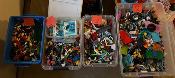Just in time for Christmas--Legos at $5 per pound! Containers included.
