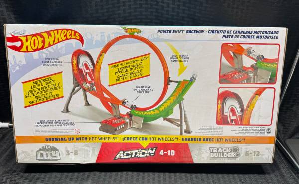 New in the box. Motorized loop and jump. Includes 5 cars. Delivery available. We accept; Apple Cash, Cash, Cash App, Chime, Venmo, and Zelle.
