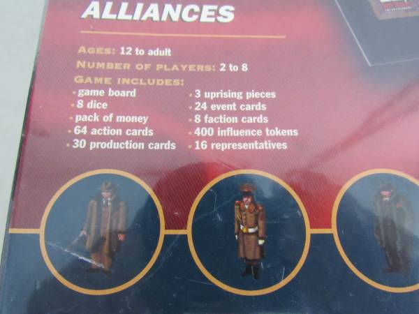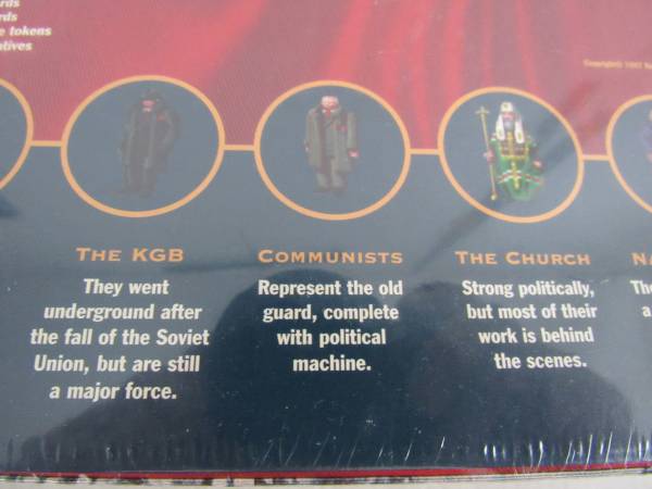 The premise of the game is that Yelstin has died and there is now a power struggle amongst various factions within Russia to take control of the vast country. For ages 12 to adult 2 to 8 players