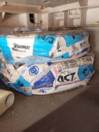 40 feet 200 amp service wire, and 4 meter cans. $80.oo. 2 rolls of 14/3, 250 feet. $100.oo each. Electrician going out of business. Tools and material.