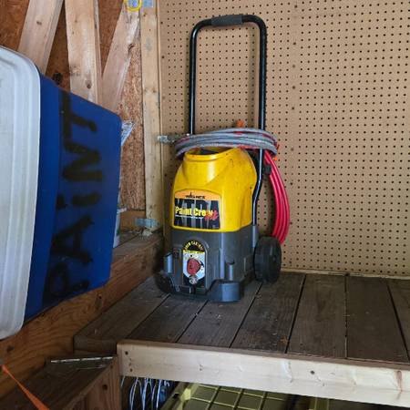 WAGNER Electric Paint Crew Plus Ultimate House Painting Tool 2800 PSI. In good condition. Compressor/pump unit, hose, gun, I may also have the roller attachment and a bottle of lubricant. $125.