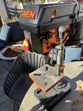 Wen Benchtop Drill Press New/Never used 2.3Amp, 8 inch, 5-speed Cast Iron Operates at 740 RPM, 1100 RPM, 1530 RPM, and more speeds Includes 1/2 in. keyed chuck, 2.3 amp induction motor...