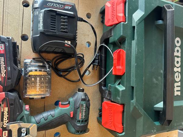 Metabo (not HPT) SSD 18 LTX 200 BL impact driver in excellent condition. Kit includes 12-speed impact driver, impact bit set, two 4.0 ah LiHD batteries, air-cooled charger, and Metabox tool box....