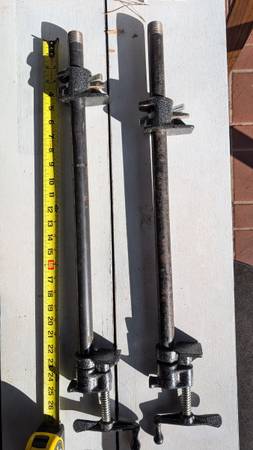 Cleaning out my shop and here's a pair of 3/4" diameter woodworking pipe clamps, 24" long each. Well used, but these things last forever. Pipes are straight, ready to go. These are Woodcraft house...