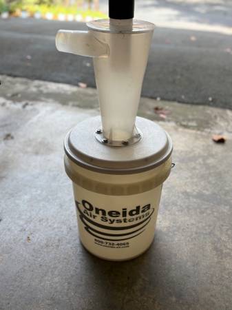 Great condition Oneida Dust Deputy original. Has cyclone top, 5 gallon bucket, and attachment hose. Seals are great and in fantastic working condition.