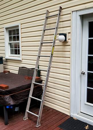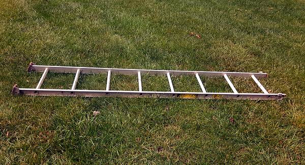 * Light-weight straight aluminum ladder * Non-slip "D" rungs - See picture * "Ground-gripping" feet * Compare new @ $120 * Lightweight - Easy to move
