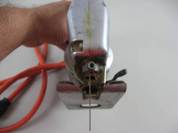 The jig saw is in good working condition, with some age and usage wear. The rubber grommet where the power supply cord comes out of housing is split. There is no hex tool for changing the blade included. The blade is still sharp and the base is adjustable.