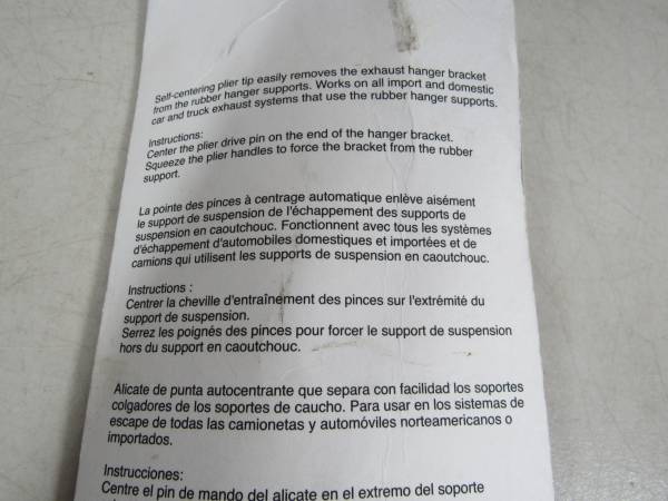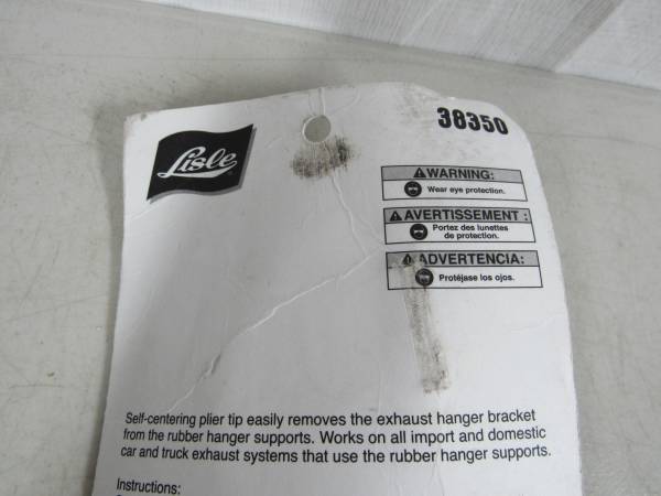 The Lisle Exhaust Rubber Support Hanger Removal Pliers are new sealed in original package. Minor storage wear to the package. Made in USA. See photos