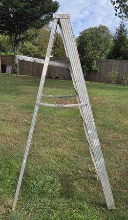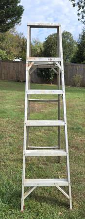 6 foot Aluminum Step Ladder that will hold up to 250lbs. Has kick out paint shelf.