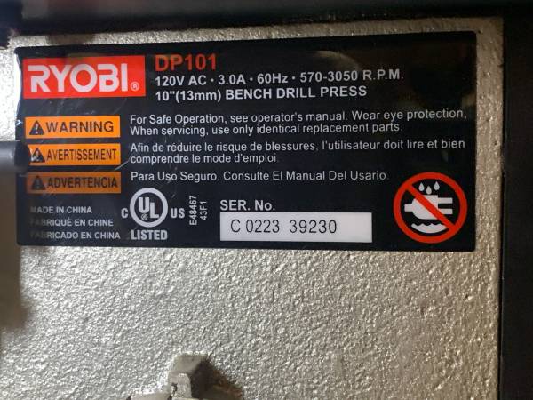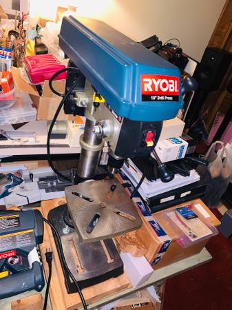 Leave a voicemail message, no texts Ryobi DP101 - Like New condition, very little use. 10" Bench Drill Press 120 volt 3 Amp motor Variable RPM 570 - 3050 RPM Pre-mounted onto a wood board for...
