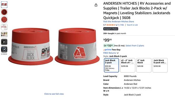 ANDERSEN HITCHES Trailer Jack Blocks. 2-Pack w/ Magnets. Greatly decreases camper movement when leveled by shortening stabilizer jacks.