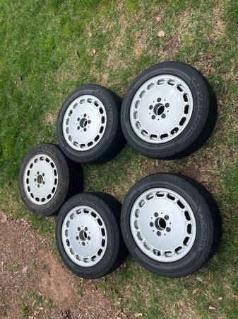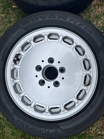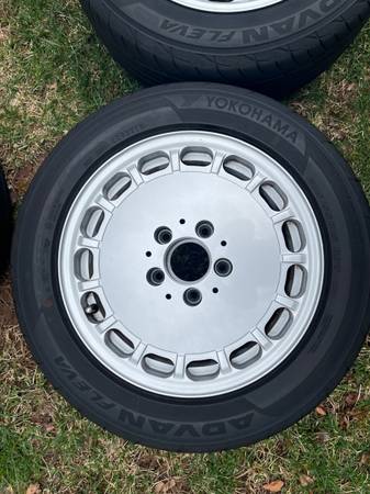 Stripped and painted OEM 15 x 7 Gullideckel wheels with Yokohama Advan Fleva tires in 205/55R15 with less than 2,000 miles on them. I used this set less than six months and found my preference (16 inch Gullideckels) and switched over. Wheels are in perfect shape except for a minor scratch on one of them. Tires have 2019 date codes/ I have a 5th wheel and tire spare if needed at extra cost but will throw that in for full price offers. Perfer pickup as shipping won't be cheap...