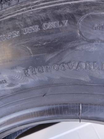 Tread is regroovable for additional mileage (federal and state laws may apply)