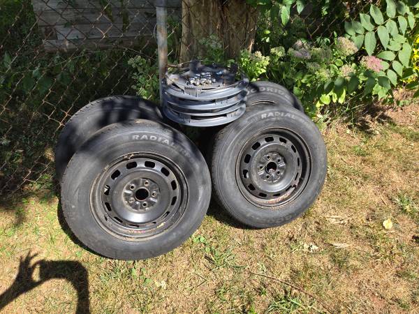 I have a complete set of rims and tires for sale. They are 15" rims and the tires still have life on them. The bolt pattern is 5x100. Came off a toyota. If interested let me know.