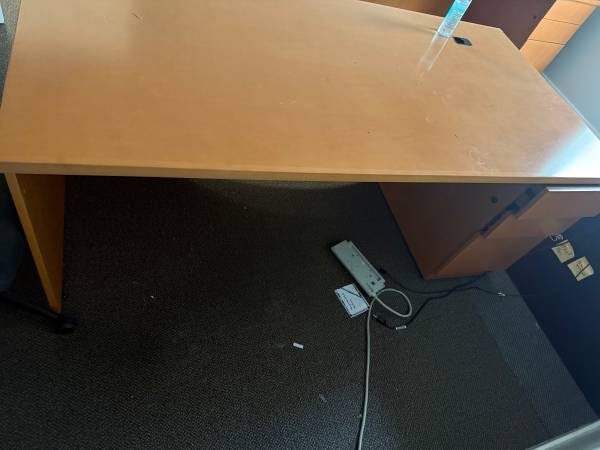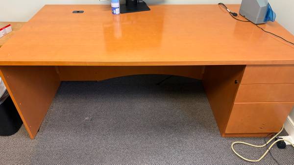 We have 5-6 wooden desks with drawers available for pick up. They have been removed from the office and are currently loaded on a box truck in a parking lot. We would meet you in our parking lot for an easy pick up.