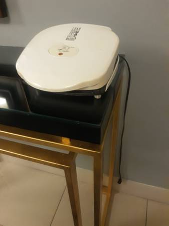 Model GR-10A. The proper condition may be salvage but it's not an option in the Condition menu. The last time I attempted to use it I hadn't used it in a long time (it was used by someone else and I don't know how frequently). I noticed it started to smell after a few minutes of preheating so I stopped using it. I now see online that may be due to a long period of non-use and/or residue/needing better cleaning and not necessarily an electrical issue. There is discoloration and the hinge connecting the base and lid is loose. The nonstick coating is scratched off (shown). Cord appears to be in good condition. It was not heavily used, at least in the last decade+. The internet indicates this is the kind of appliance that electrically-skilled folks, which I am not, could successfully investigate and correct issues. Use at your own risk and please be careful.