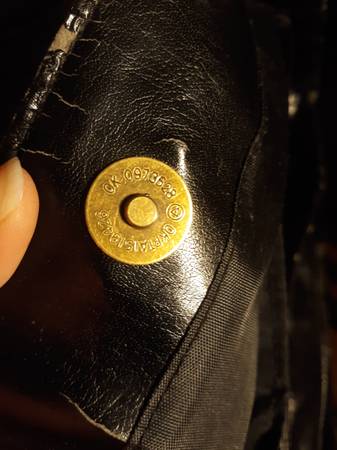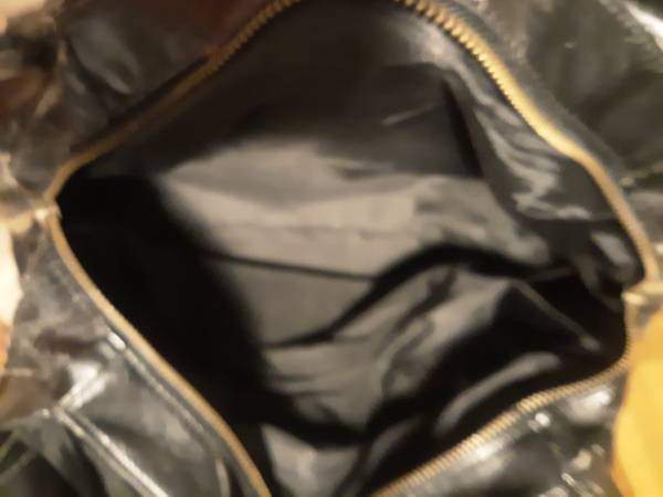 Calling all textile creatives and other artists - can you make this disintegrating dark metallic satchel into something useful and spare the earth a near-term trip to the local incinerator? Roomy w/ snap closure on either side w/zippered center. Snap identifiers only identifier on bag but does not appear to be specific to the bag style and brand, only to the snap.