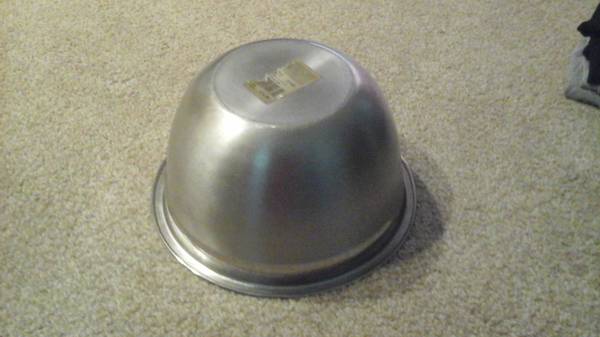 Aluminum mixing bowl. Small pinhole in it. Thought someone might have an alternate use for it.
