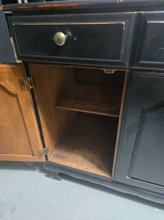 Up for grabs: Buffet: 44" x 18.5" 32" Dresser/changing table: 31.5" wide 43.5" tall 17" deep Table flips out to 28.5" Top shelf is 12" deep Moved and no longer needed. Can deliver within a...