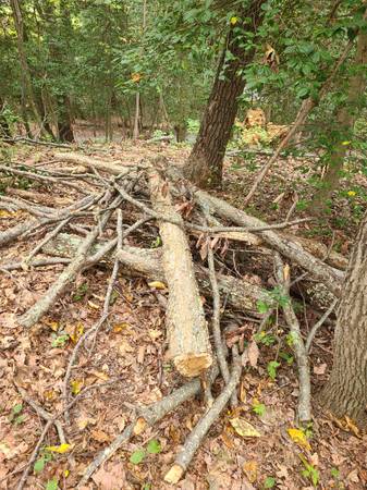 Free Oak log firewood close to road for easy pickup. 3 - 5 inches in diameter in 5 - 10 ft lengths. See pics.